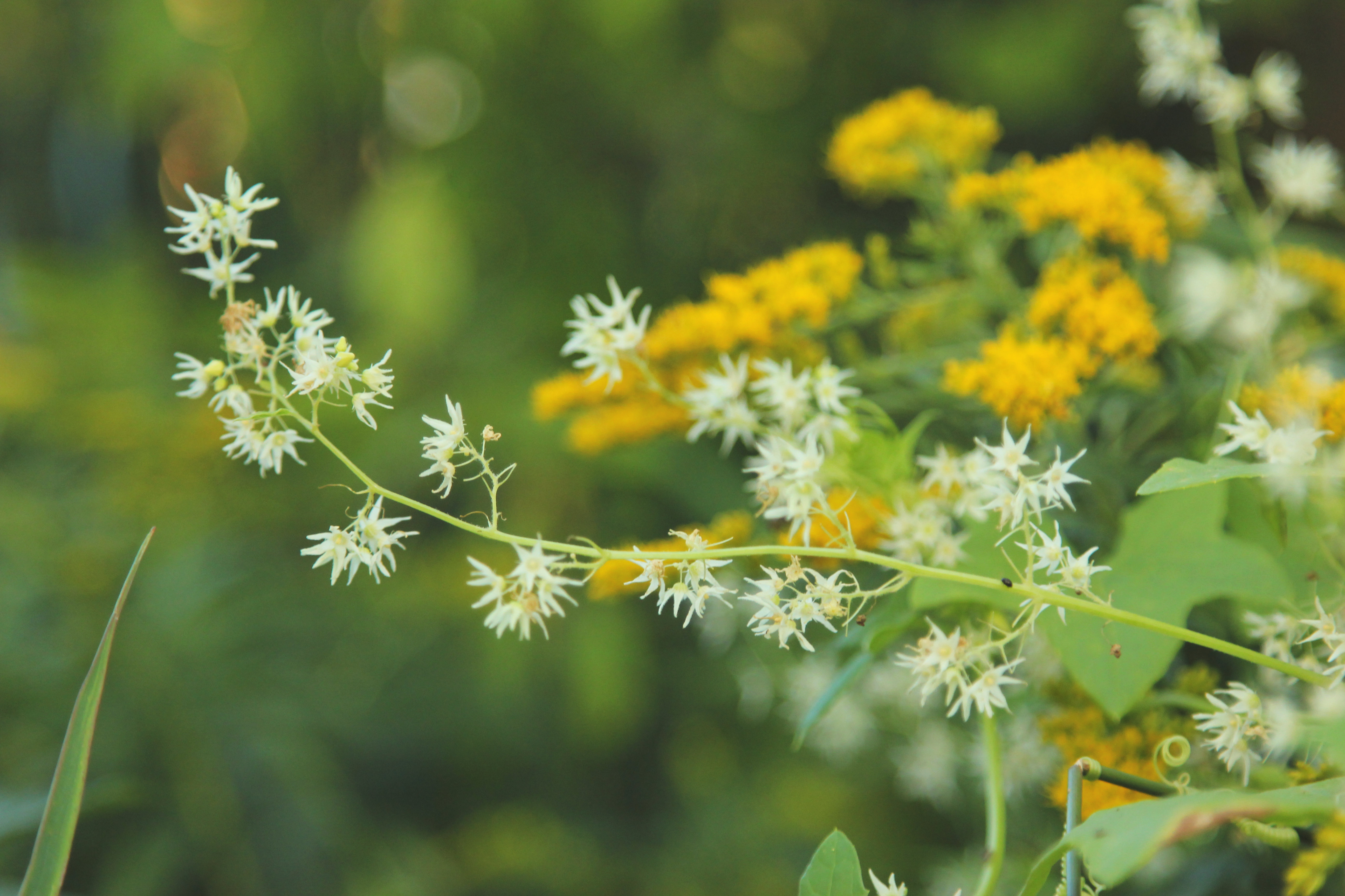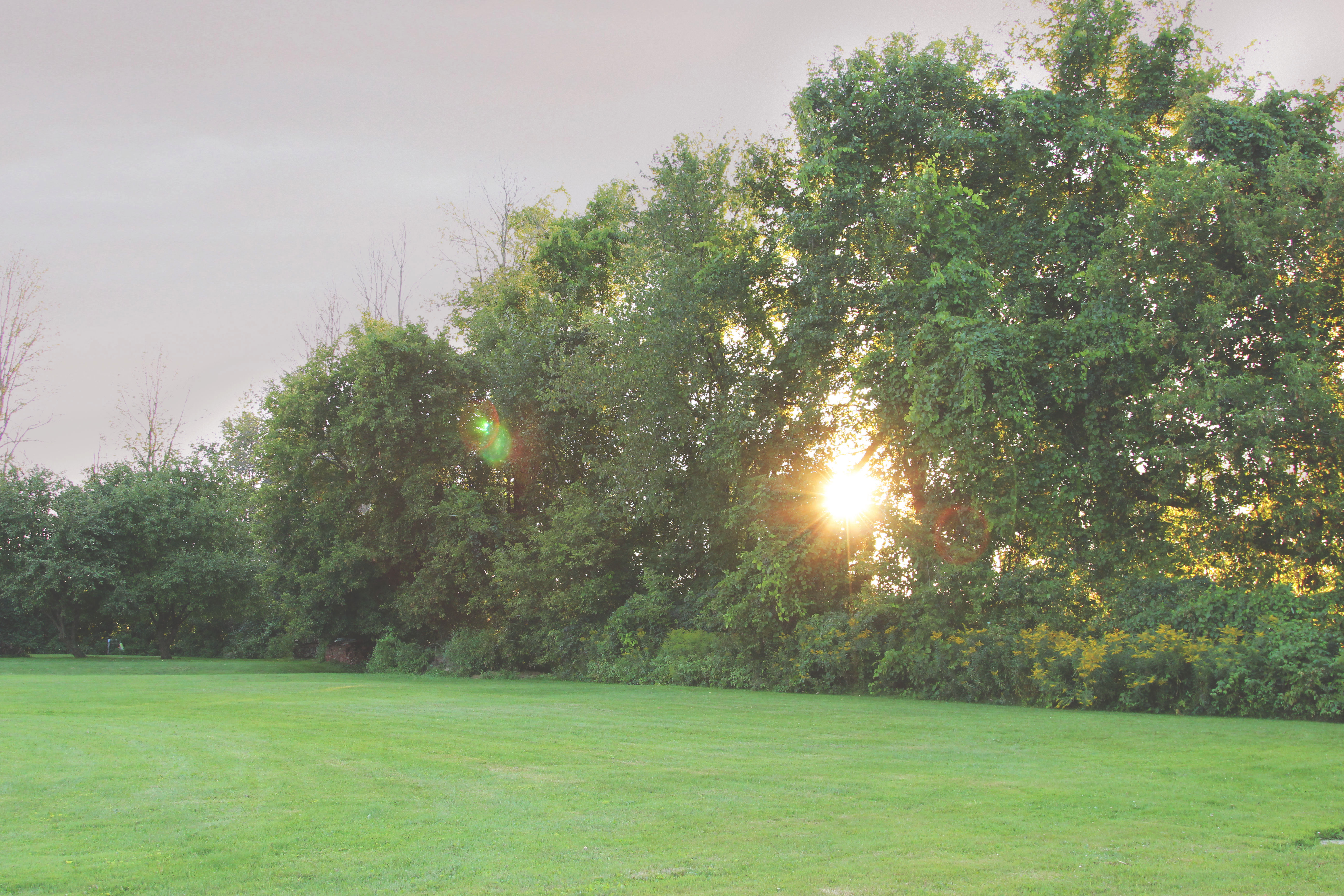 Two edges of our property are lined with hedgerows. On the other side of these are a ditch and then farmers fields. Many wonderful things can be found among our hedgerows, raspberries, thistles, wild grapes, an assortment of flowers and other berries I do not think are edible. The front corner of our property at the start of the hedgerow is the most wonderful 100+ year old ash tree.