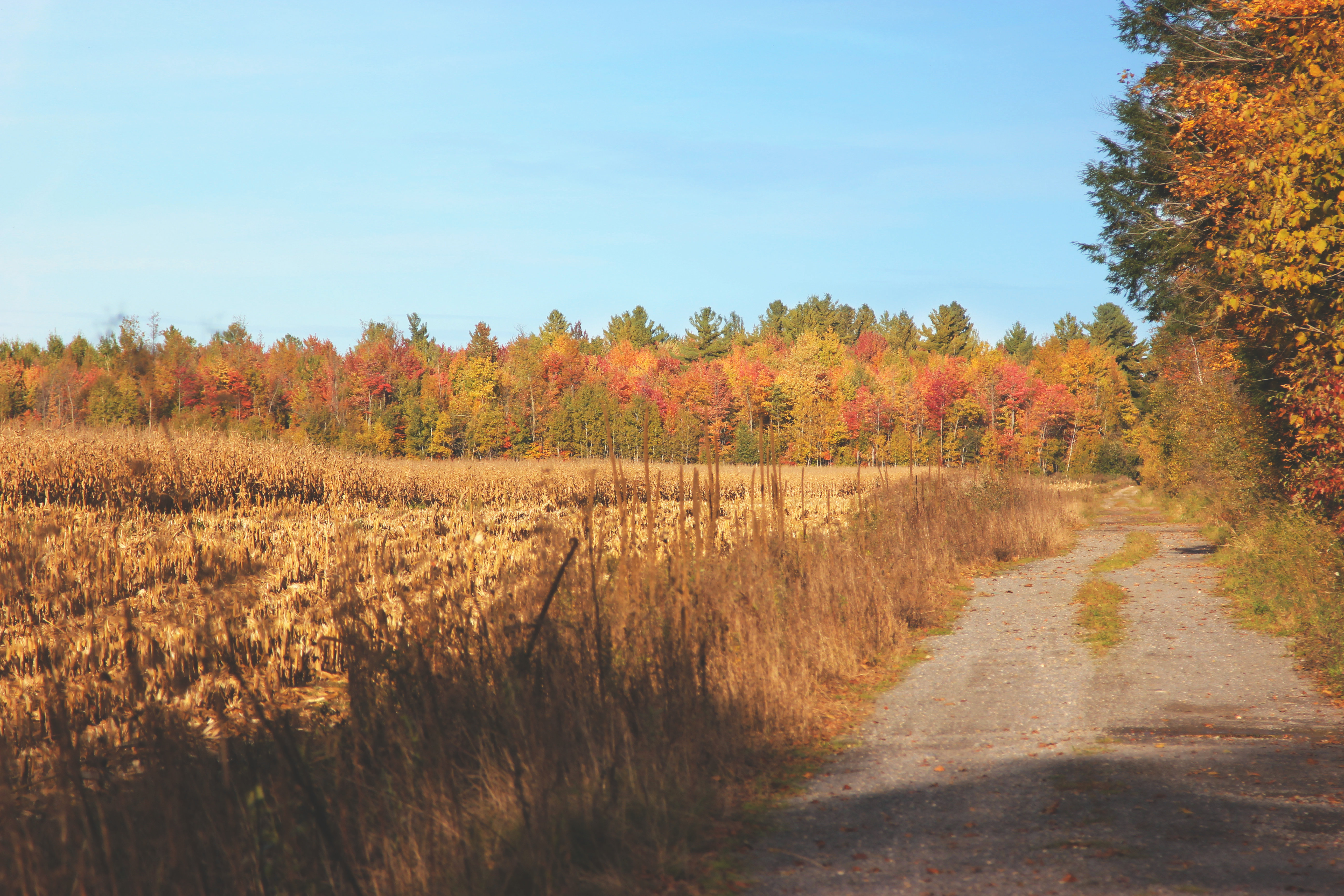 One of my fondest childhood memories is of country drives in the Autumn. The warmth of the sun streaming in through the windows. The fields ready for harvest. The colour combinations and the smell of the dry leaves. There is something so different about Autumn in the country. For the past eight years we have lived along the Ottawa river with view of the Laurentian mountains, but this. This is different… Cue a little John Denver music.
