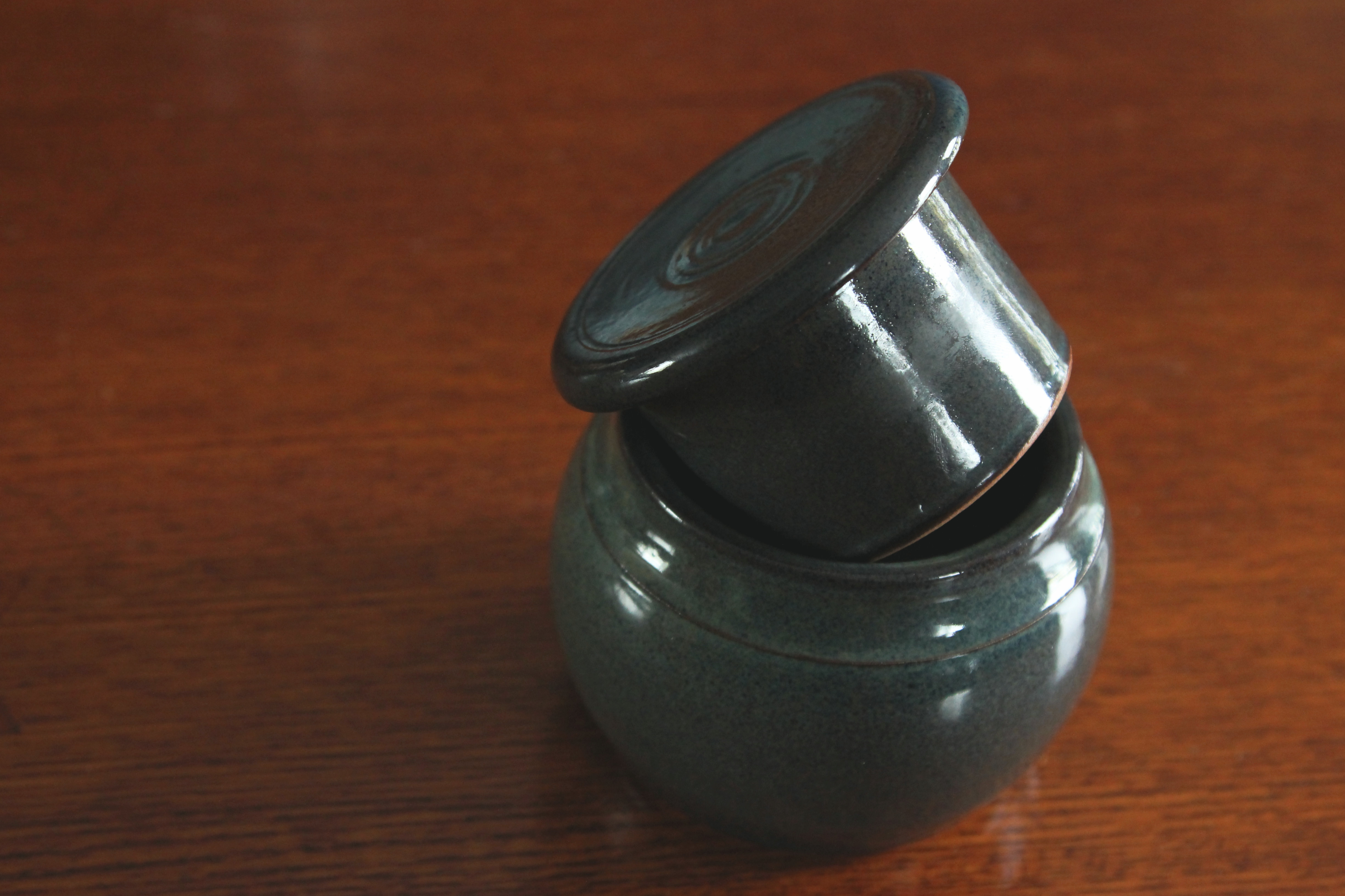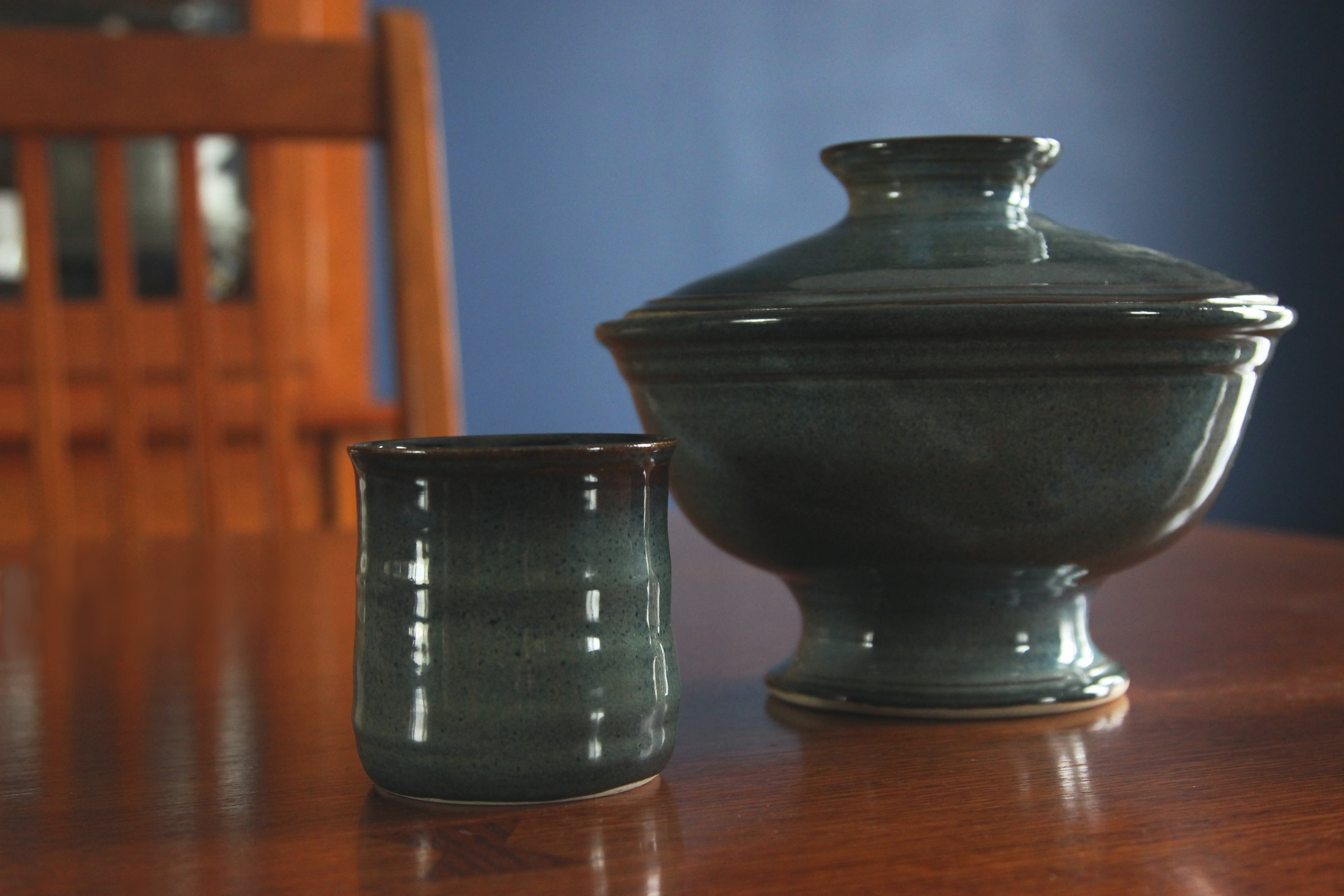 The simple cup sits on my desk holding my calligraphy pens. The tureen on my kitchen island. And the butter bell… it is used every day. These few items bring me such happiness, they are beautiful works of art the lines and form the colour and texture.
